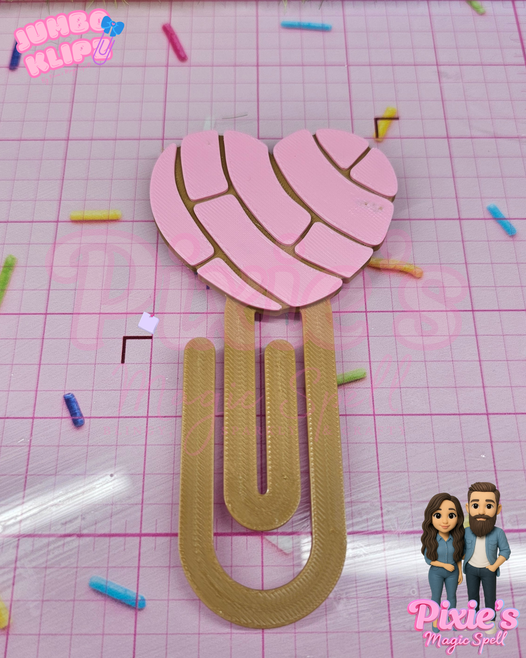 📚 Add sweetness to your books and planners with our Conchita Love JumboKilpz! These jumbo-sized paperclips/bookmarks are 3D printed in a concha-inspired heart design, making your stationery as delicious-looking as your favorite pan dulce.