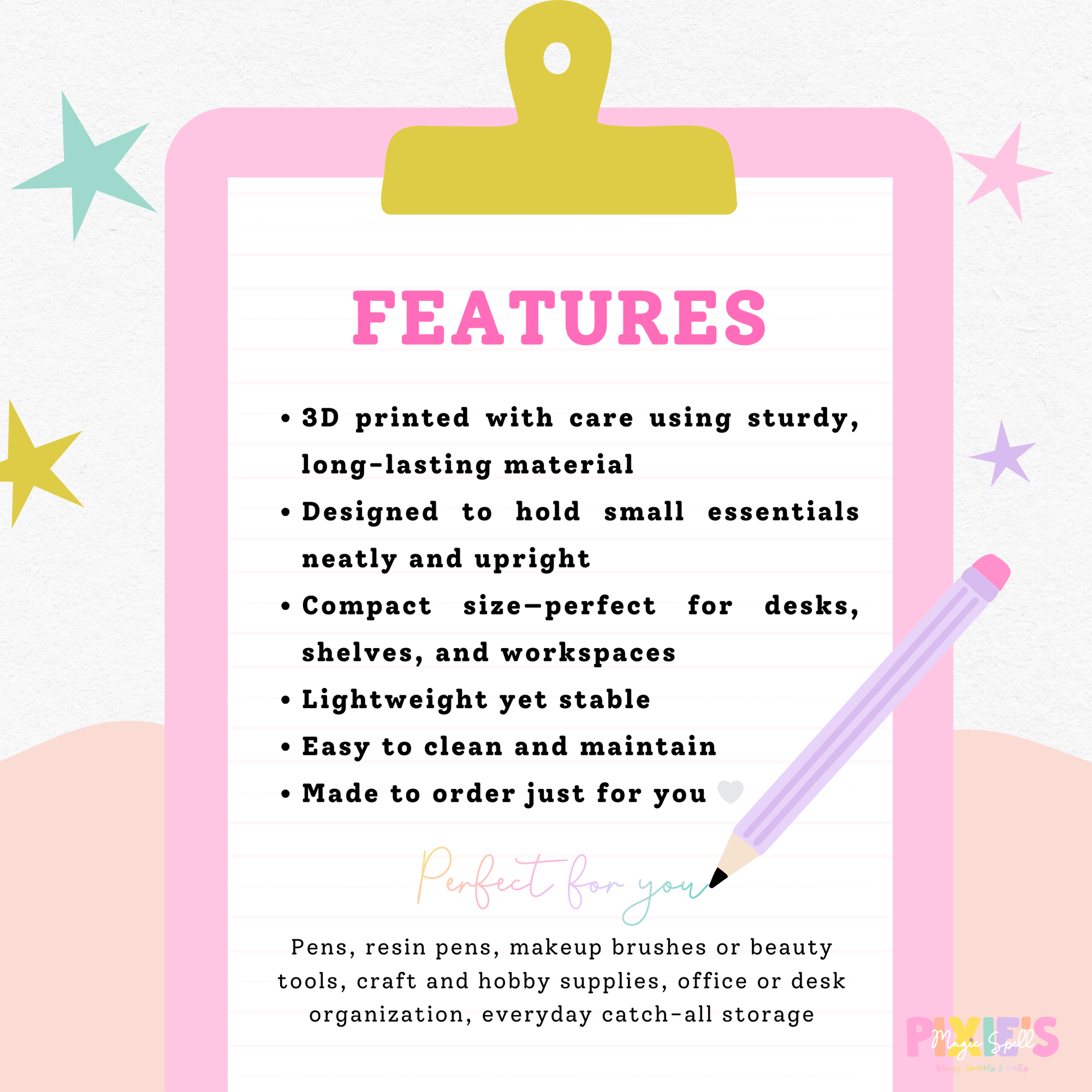 This versatile little helper is perfect for holding pens, markers, makeup brushes, craft tools, desk essentials, or small everyday items, keeping everything right where you need it without the mess. Whether it lives on your desk, nightstand, craft table, or workspace, it brings both function and charm to your setup.