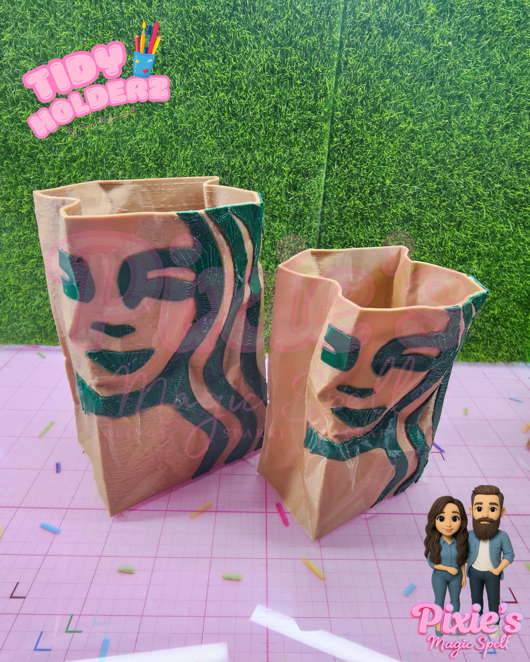 Our “SirenSB” paper bag design, this multifunctional holder keeps your space clutter-free while adding a pop of personality. Whether on your desk, vanity, or coffee station, the SirenSB Tidy Holder is perfect for keeping everything in its place.