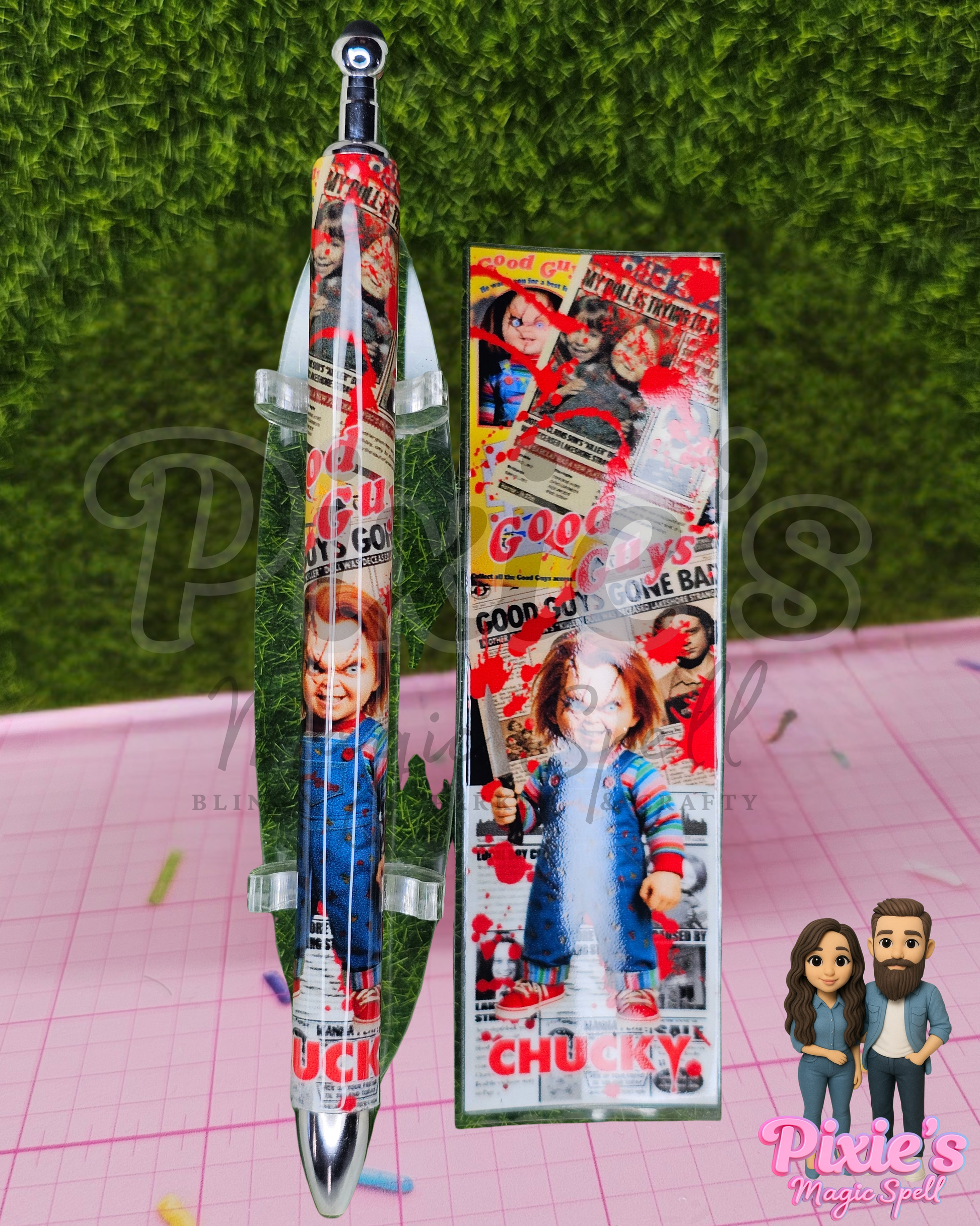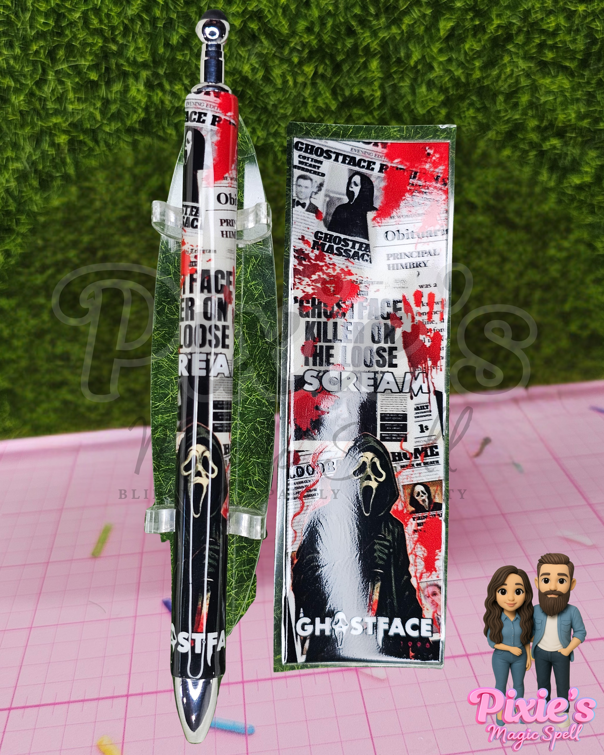 Each pen is handcrafted with our signature resin artistry, packed with eerie details, haunting color palettes, and a killer shine that horror fans will die for (figuratively, of course).